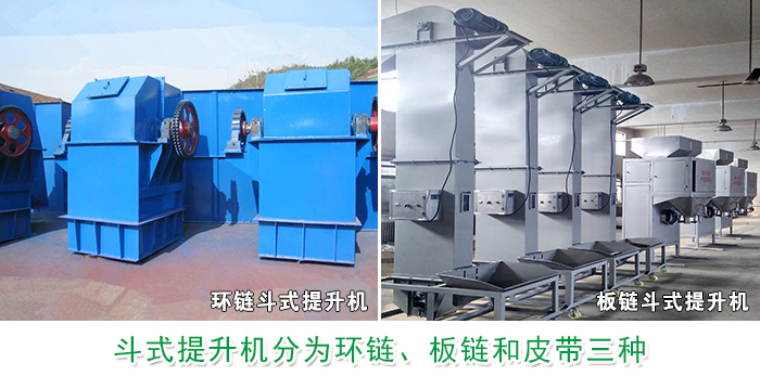 斗式提升機分為環(huán)鏈、板鏈和皮帶三種,根據(jù)所提升的物料選擇的料斗設(shè)計不同,其外形設(shè)計內(nèi)部配置是不同的,環(huán)鏈?zhǔn)竭m用于輸送粉狀、小塊狀的物料,板鏈?zhǔn)竭m用于中、大塊和有磨琢性的物料,皮帶式適用于垂直輸送粉狀、且磨琢性較小的散狀物料,選擇不同種類的提升機造成價格上的差異化。