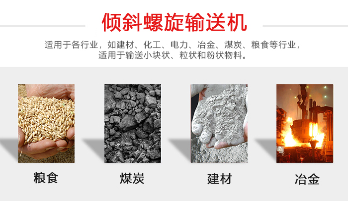 傾斜螺旋輸送機是利用電動機經減速器帶動螺旋回轉,通過旋轉,把物料沿固定的機殼內推移而進行輸送工作,從而輸送到預定的位置。 大角度螺旋輸送機根據各種用途、安裝位置,型號、輸送方式,對減速器、電動機的安裝位置可多樣化、不受限制。