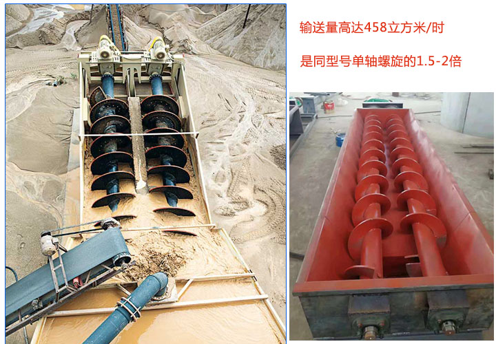 雙螺旋輸送機(jī)輸送量高達(dá)458立方米/時(shí),由于是兩根螺旋同時(shí)旋轉(zhuǎn)可增大其輸送效率,其輸送量是同型號(hào)單軸螺旋輸送機(jī)的1.5-2倍;此外,還可多點(diǎn)裝料或卸料,可大大加大輸送產(chǎn)量,一小時(shí)可達(dá)100噸。