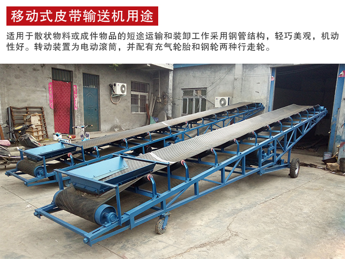 簡介:移動式皮帶輸送機是一種工效高,使用安全可靠,機動性好的連續輸送裝卸設備。