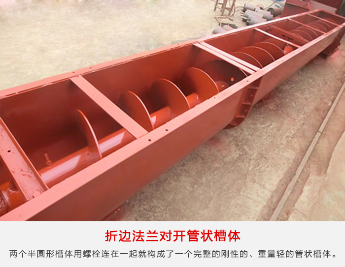 煤粉螺旋輸送機這種形式的槽體類似于角鐵法蘭槽體,但法蘭是由半圓形槽體的同一塊鋼板橋邊加工制成,兩個半圓形槽體用螺栓連在一起就構(gòu)成了一個完整的剛性的、重量輕的管狀槽體。