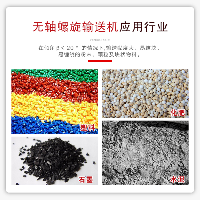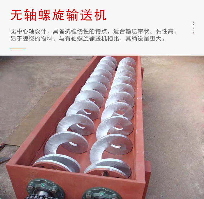 簡介:無軸螺旋輸送機采用了無中心軸設計,具備防纏繞性,可以用于輸送粘性強、纏繞性物料